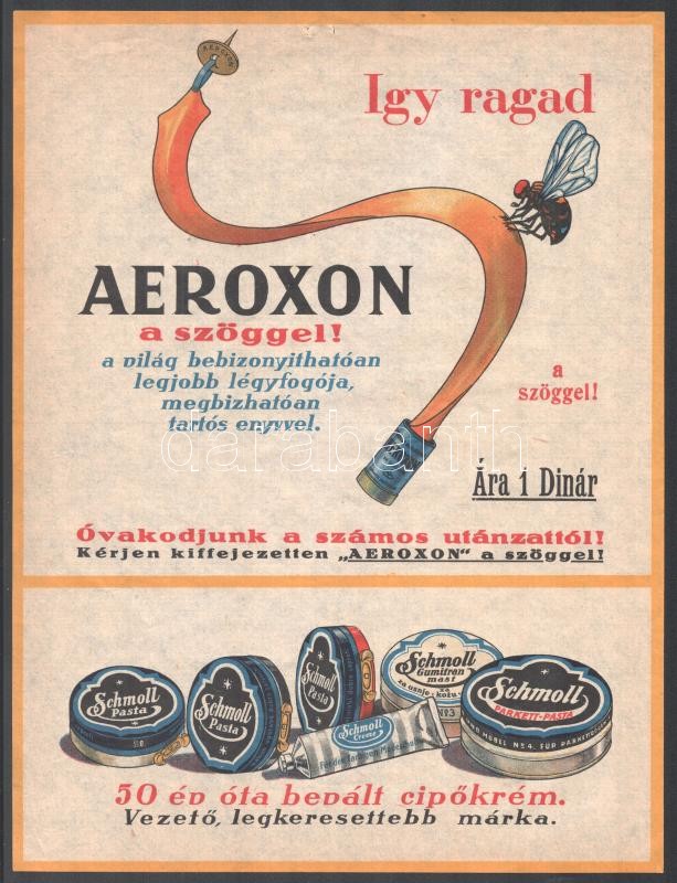 cca 1920-1940 Aeroxon reklám, 29x22 cm https://www.darabanth.com/hu/420-Gyorsarveres/420.0/Mutargy-papirregiseg-egyeb/Reklam~500022/cca-1920-1940-Aeroxon-reklam-29x22-cm~II2660699