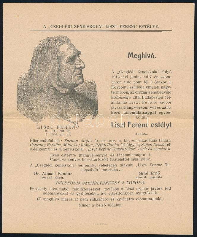Leírás: 1913 Ceglédi zeneiskola Liszt hangversenye reklám nyomtatvány 4 p.