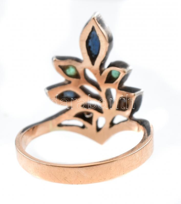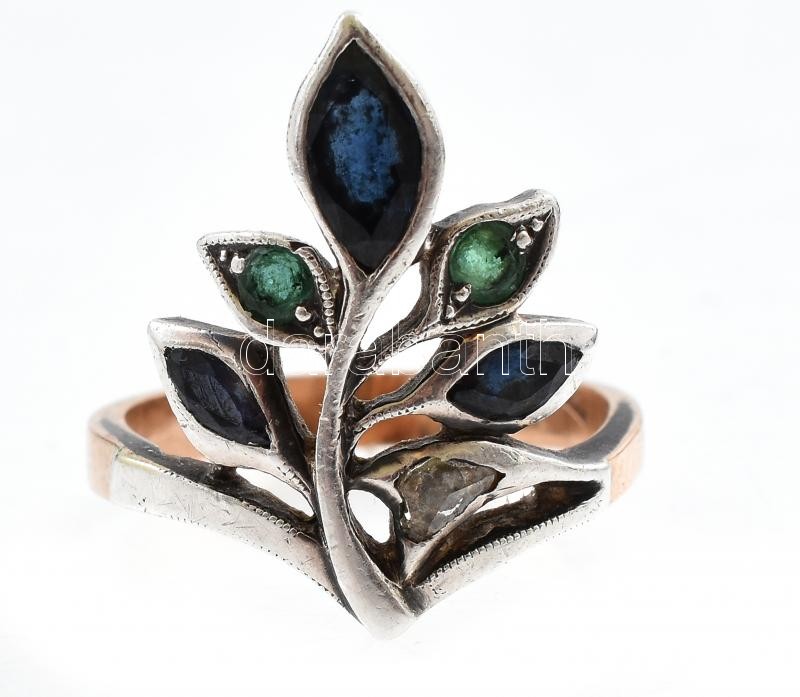 Leírás: Arany (Ag/14k) gyűrű smaragddal (0,18ct), Zafírral (0,98ct) brill (0,08ct) m: 54, jelzett, bruttó: 4,6g