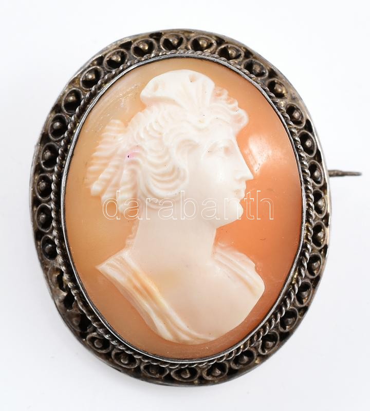 Leírás: Ezüst (Ag) foglalatban camea bross, jelzett, 3x2,5cm, bruttó:8,96g
