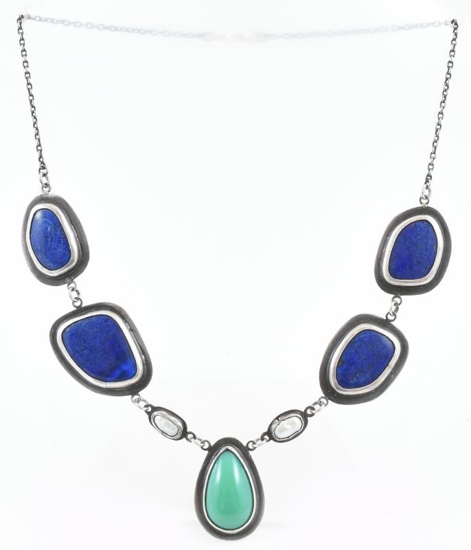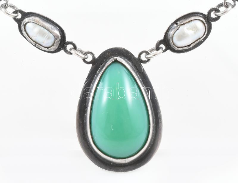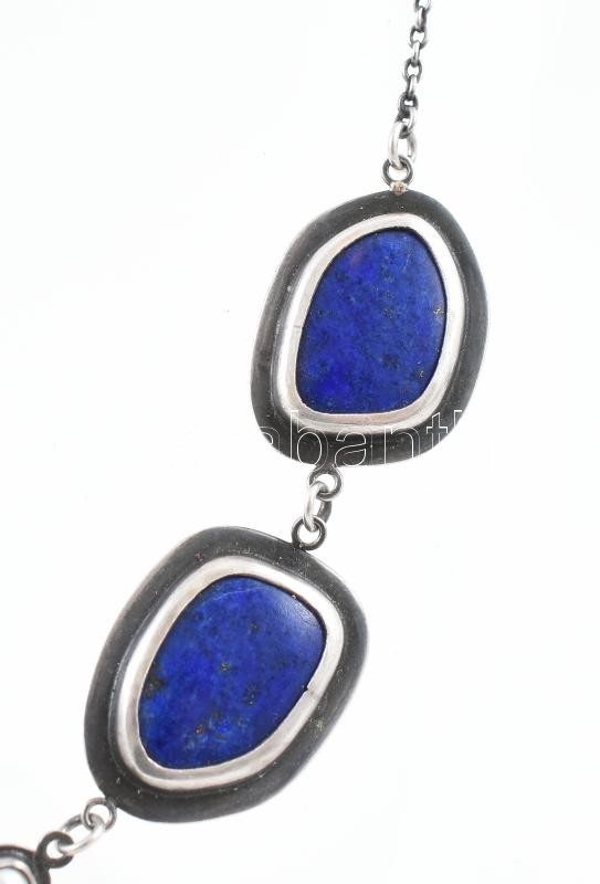 Leírás: Ezüst (Ag) nyaklánc, Laspis Lazuli és Jáde, 2db gyöngy, h: 42 cm jelzett, bruttó: 33,4g