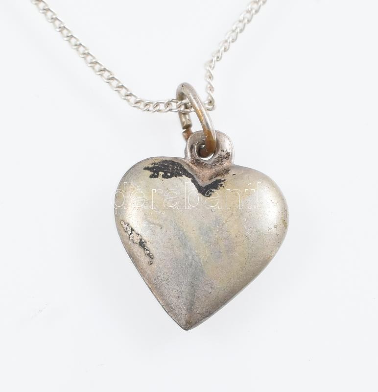 Leírás: Ezüst (Ag) nyaklánc, szív medállal, jelzett h: 40 cm, nettó: 1,5