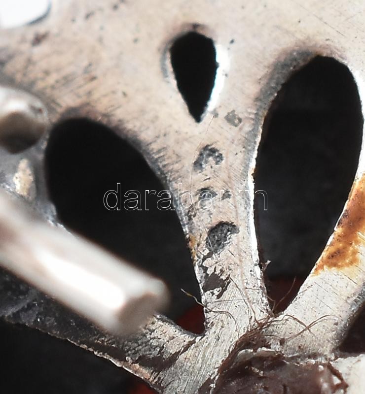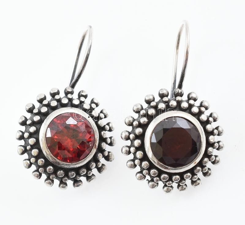 Leírás: Ezüst(Ag) fülbevalópár két eltérő árnyalatú piros kővel, jelzett, d: 1,7 cm, bruttó: 7,7 g