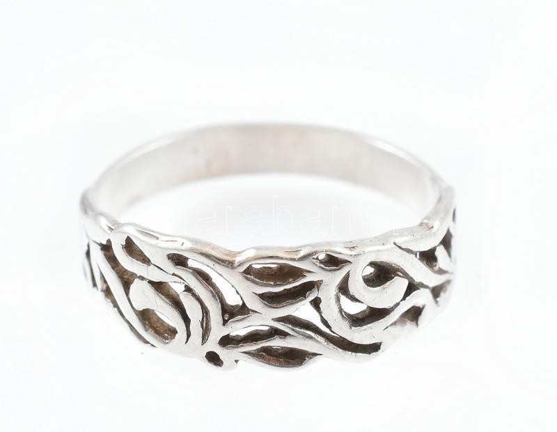 Leírás: Ezüst(Ag) indamintás áttört gyűrű, jelzett, méret: 56, nettó: 2,3 g