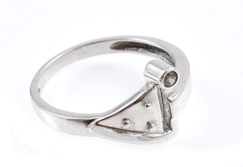 Leírás: Fehérarany (Au) 14 K modern köves gyűrű, jelzett, méret: 53, bruttó: 2,5 g