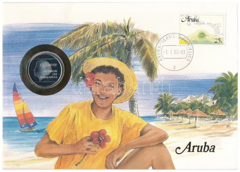 Aruba 1988. 1Fl Cu-Ni "Beatrix" bélyeges érmés borítékon, német nyelvű ismertetővel T:1- (eredetileg PP) Aruba 1988. 1 Florin Cu-Ni "Beatrix" coin letter with stamp and German description C:XF (originally PP)