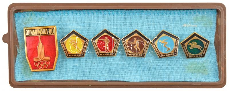 Szovjetunió 1980. 6db-os "Moszkvai Olimpia" aranyozott, zománcozott fém jelvény tétel tokban (6xklf) T:1-