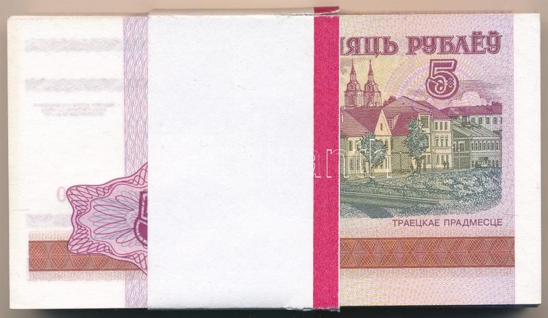Leírás: Fehéroroszország 2000. 5R (100x) kötegelővel, sorszámkövetők T:I,I- Belarus 2000. 5 Rublei (100x) with wrapper, consecutive serials C:UNC,AU Krause P#22