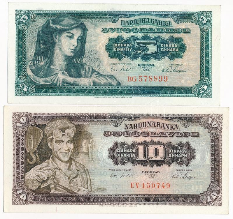 Jugoszlávia 1965. 5D "BG 578899" + 10D "EV 150749"... https://www.darabanth.com/hu/420-Gyorsarveres/420.0/Numizmatika/Kulfoldi-bankjegyek~2000015/Jugoszlavia-1965-5D-BG-578899-plus-10D-EV-150749-TI-I-Yugoslavia-1965-5-Dinara-BG-578899-plus-1~II2654620
