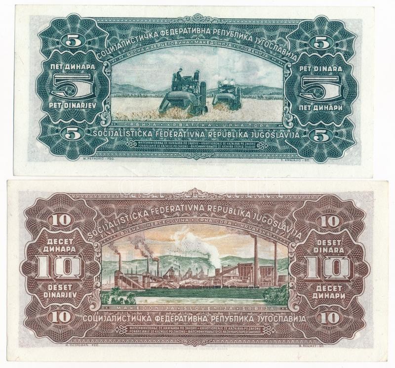 Leírás: Jugoszlávia 1965. 5D "BG 578899" + 10D "EV 150749" T:I,I- Yugoslavia 1965. 5 Dinara "BG 578899" + 10 Dinara "EV 150749" C:UNC,AU