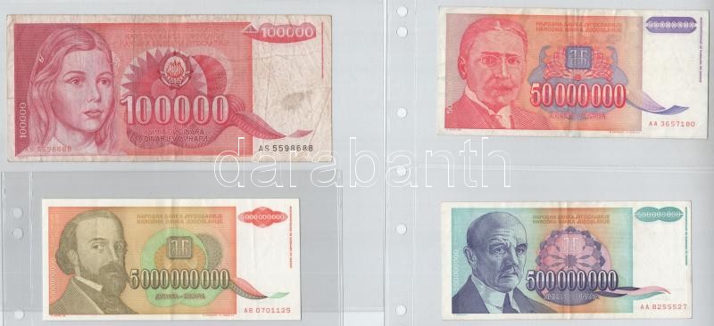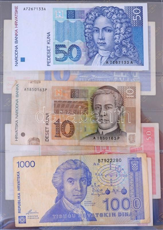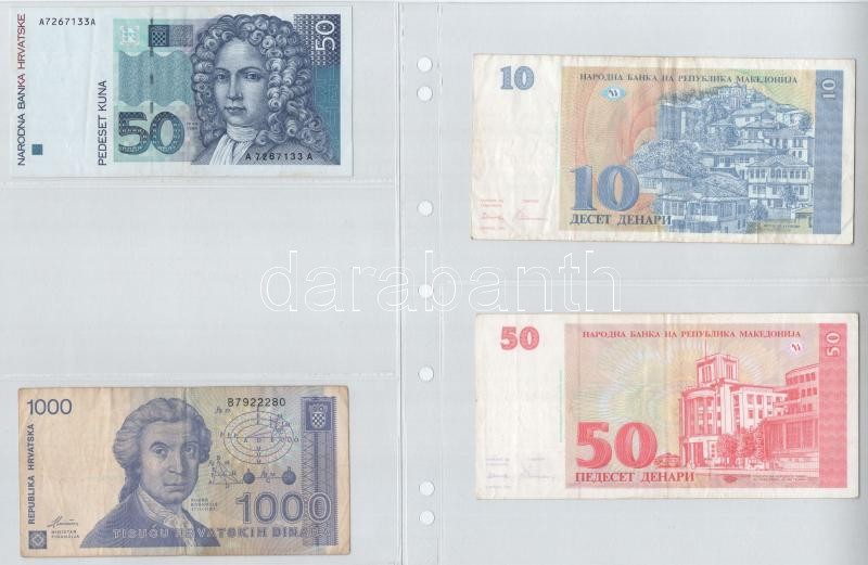 Jugoszlávia / Utódállamok 44db-os rendezett jugoszláv, szerb, horvát, szlovén, bosnyák, makedón bankjegy tétel, mind különféle, kék "NUMIS" berakóba rendezve T:I--III Yugoslavia / Successor States 44pcs of organized Yugoslavian, Serbian, Croatian, Slovenian, Bosnian, Macedonian banknote lot in blue "NUMIS" binder C:AU-F