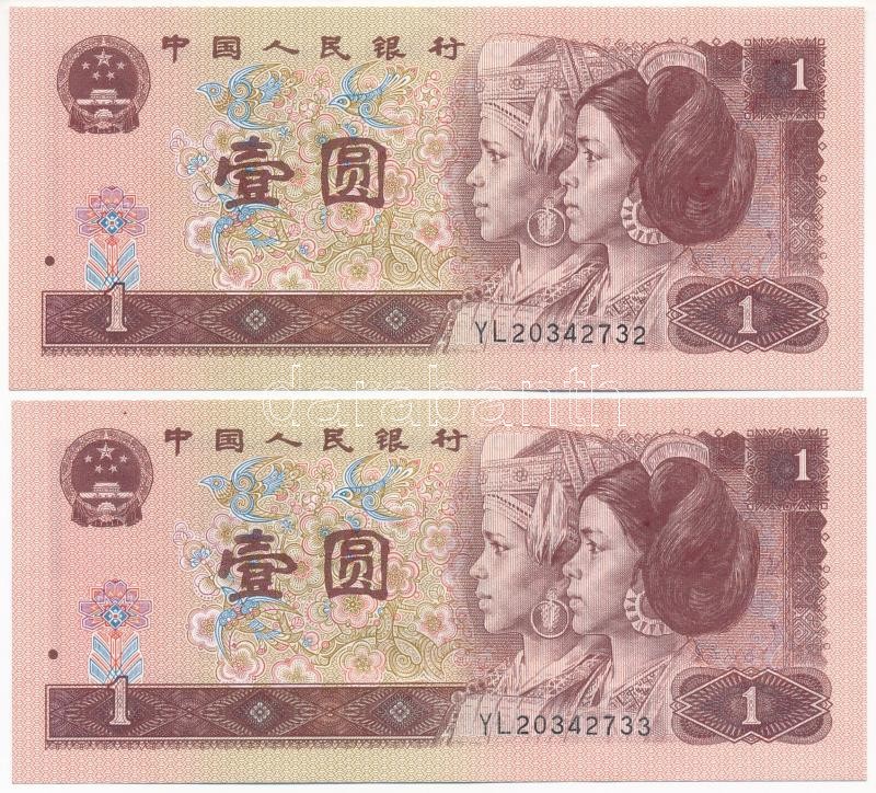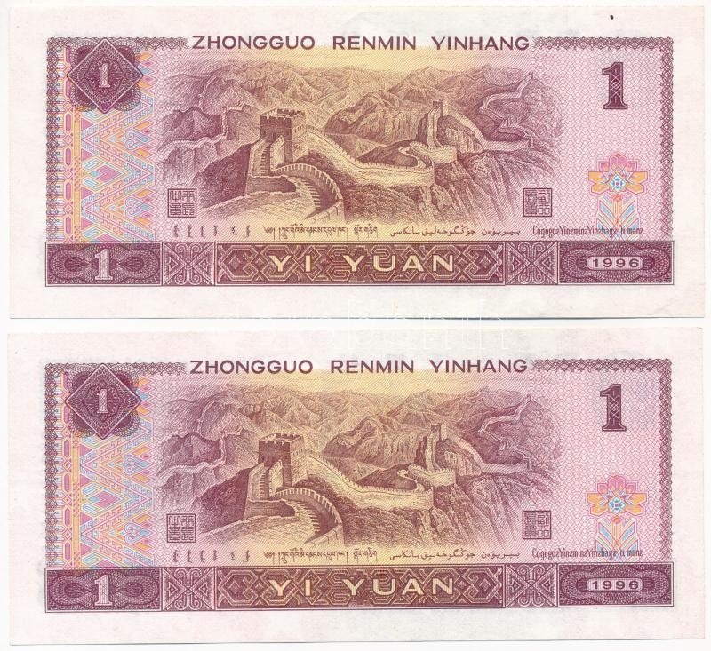 Kína 1996. 1Y (2x) sorszámkövetők "YL 20342732- YL 20342733"... https://www.darabanth.com/hu/420-Gyorsarveres/420.0/Numizmatika/Kulfoldi-bankjegyek~2000015/Kina-1996-1Y-2x-sorszamkovetok-YL-20342732-YL-20342733-TI--China-1996-1-Yuan-2x-cons~II2663857