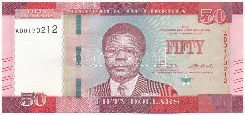 Liberia ... https://www.darabanth.com/hu/420-Gyorsarveres/420.0/Numizmatika/Kulfoldi-bankjegyek~2000015/Liberia-2017-50USD-AD-0170212-TI-hullamos-papir-Liberia-2017-50-Dollars-AD-0170212-CAU-wa~II2654920