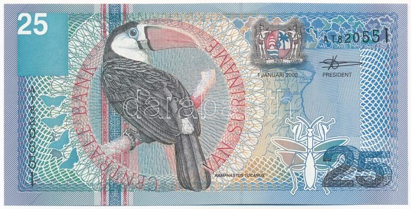 Suriname 2000. 25 Gulde... https://www.darabanth.com/hu/420-Gyorsarveres/420.0/Numizmatika/Kulfoldi-bankjegyek~2000015/Suriname-2000-25G-AT-820551-TII-Suriname-2000-25-Gulden-AT-820551-CXF-Krause-P23148~II2653001