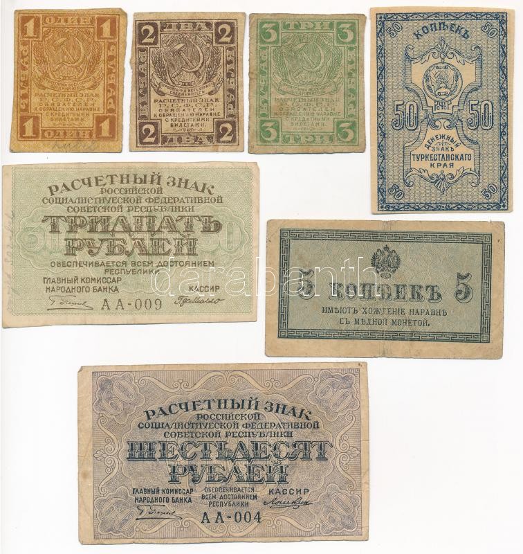 Leírás: Szovjetunió / Orosz Szocialista Szövetségi Szovjet Köztársaság 1919. 50k + 1R + 2R + 3R + 30R + 60R + Orosz Birodalom 1915. 5k T:III,III-