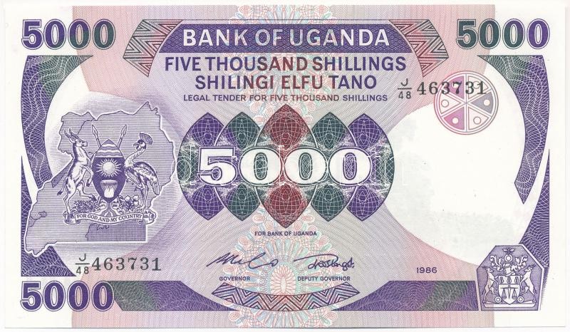 Uganda 1986. 5000 Shi... https://www.darabanth.com/hu/420-Gyorsarveres/420.0/Numizmatika/Kulfoldi-bankjegyek~2000015/Uganda-1986-5000Sh-J48-463731-TI-Uganda-1986-5000-Shillings-J48-463731-CUNC-Krause-P2324~II2654442