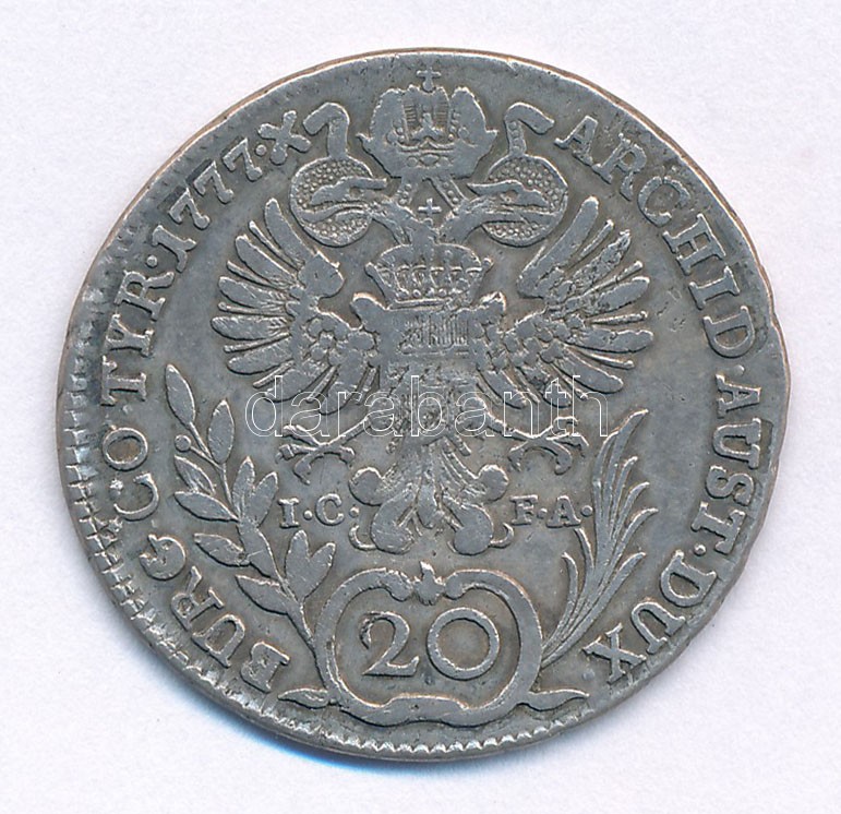 Ausztria 1777IC-FA 20kr Ag "Mária Terézia" (6,44g) T:2-,3 pa... https://www.darabanth.com/hu/420-Gyorsarveres/420.0/Numizmatika/Kulfoldi-fem-es-ezustpenzek~2000016/Ausztria-1777IC-FA-20kr-Ag-Maria-Terezia-6-44g-T2-3-patina-Austria-1772IC-FA-20-Kreuzer-Ag-~II2663219
