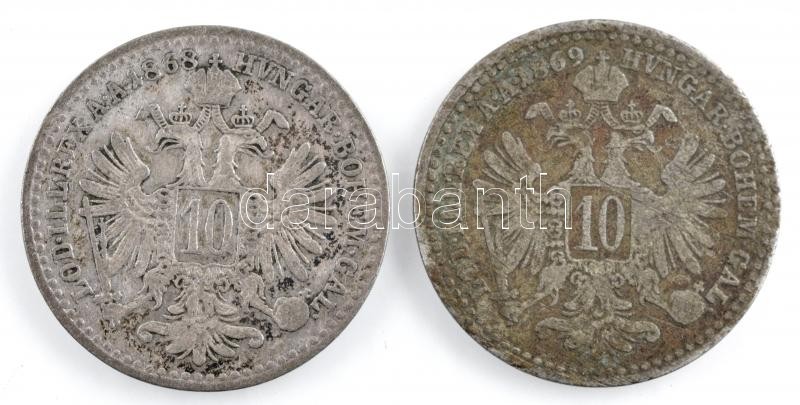 Austria 1868. 10 Kreuzer Ag "Franz Joseph" + 1869. 10 Kreuzer Ag "Franz Joseph" C:XF,VF patina