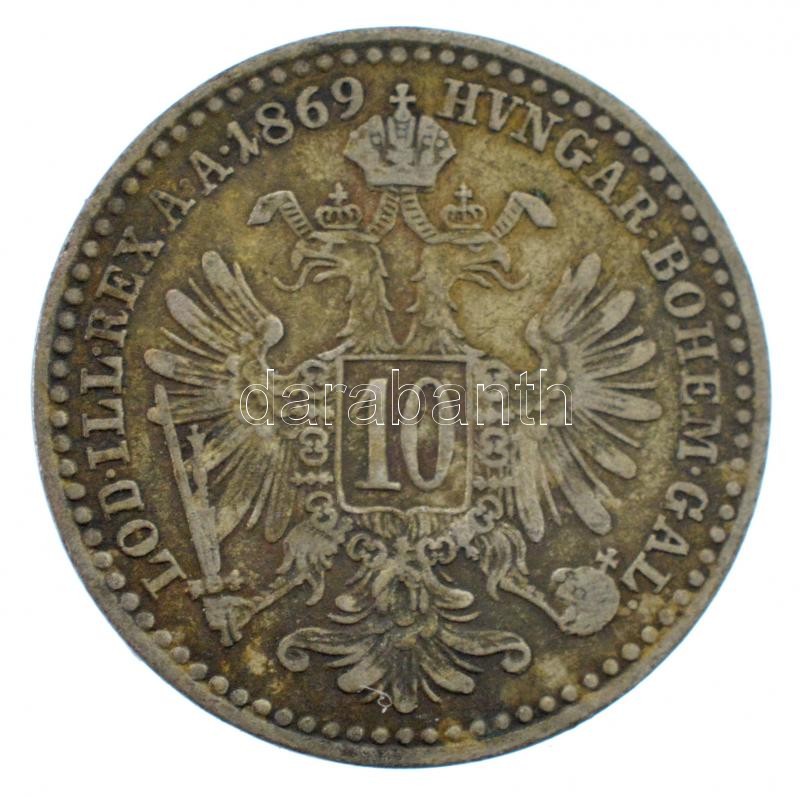 Austria 1869. ... https://www.darabanth.com/hu/420-Gyorsarveres/420.0/Numizmatika/Kulfoldi-fem-es-ezustpenzek~2000016/Ausztria-1869-10kr-Ag-Ferenc-Jozsef-T2--Austria-1869-10-Kreuzer-Ag-Franz-Joseph-CVF--Kra~II2654511