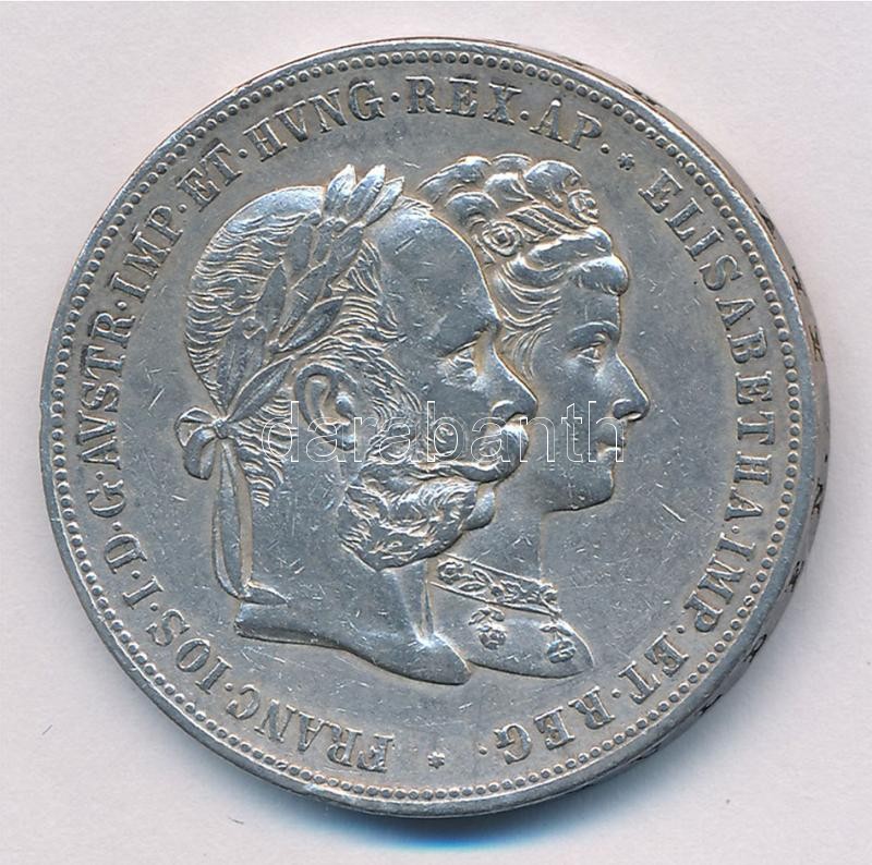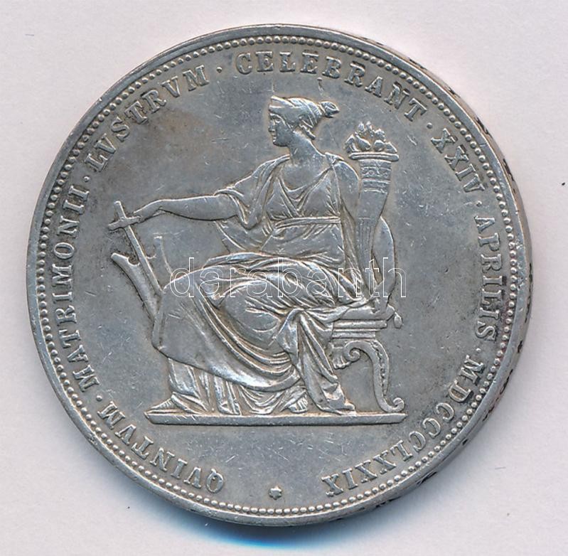 Austria 1879. 2 Gulden Ag "Franz Joseph and Elisabeth / Silver Jubilee" Vienna C:XF,VF patina, edge error