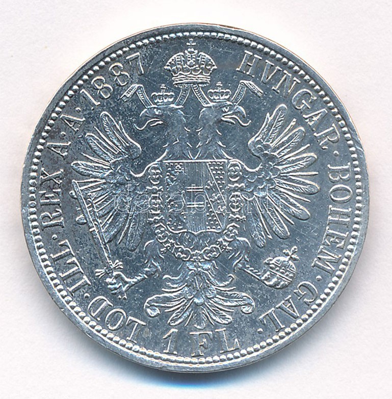 Austr... https://www.darabanth.com/hu/420-Gyorsarveres/420.0/Numizmatika/Kulfoldi-fem-es-ezustpenzek~2000016/Ausztria-1887-1Fl-Ag-Ferenc-Jozsef-T1-kis-patina-Austria-1887-1-Florin-Ag-Franz-Joseph-CA~II2654389