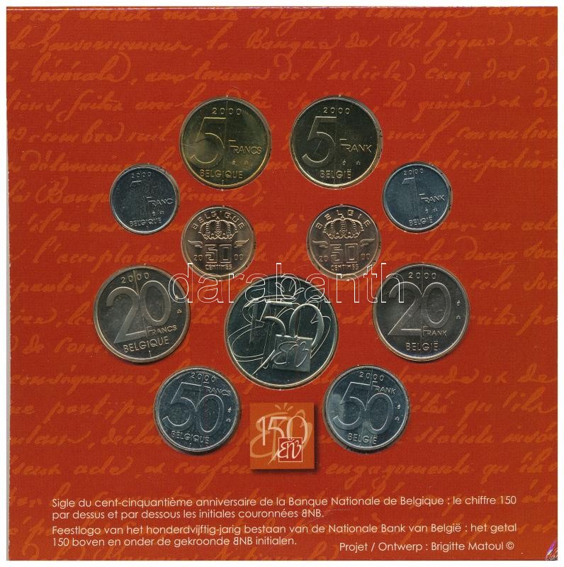 Belgium 2000. 50c - 50Fr (10xklf, 5x vallon, 5x flamand) forgalmi sor + "A belga Nemzeti Bank alapításának 150. évfordulója" emlékveret szettben, karton dísztokban T:1 kis patina, a tok pár helyen sérült