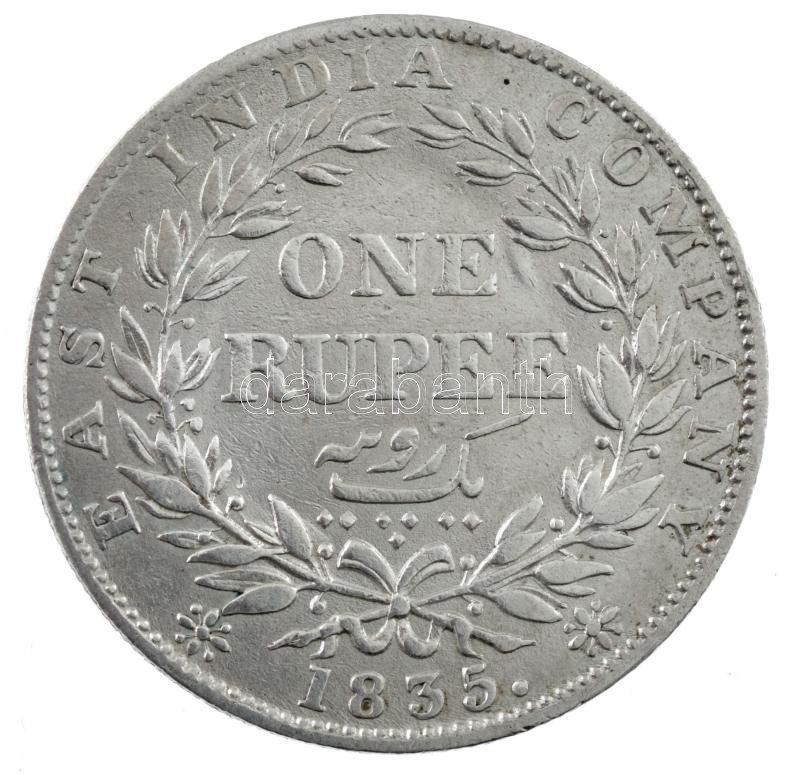 British Ind... https://www.darabanth.com/hu/420-Gyorsarveres/420.0/Numizmatika/Kulfoldi-fem-es-ezustpenzek~2000016/Brit-India-1835-1R-Ag-IV-Vilmos-T2-3-karc-British-India-1835-1-Rupee-Ag-William-IV-CVF-F-~II2660853
