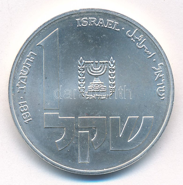 Izrael 1981. 1Sh Ag "Hanuka - Lengyel menóra" forgalomba nem került emlék kiadás T:1- patina Israel 1981. 1 Sheqel Ag "Hanukkah - Polish Lamp" non-circulating commemorative coin C:AU patina Krause KM#116