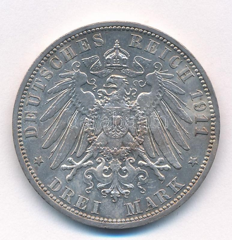 Leírás: Német Államok / Poroszország 1911A 3M Ag "II. Vilmos" T:2 German States / Prussia 1911A 3 Mark Ag "Wilhelm II" C:XF