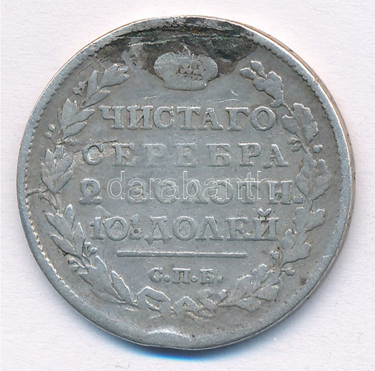 Leírás: Orosz Birodalom 1817. Poltina Ag "I. Sándor" (9,58g) T:3 durva karc