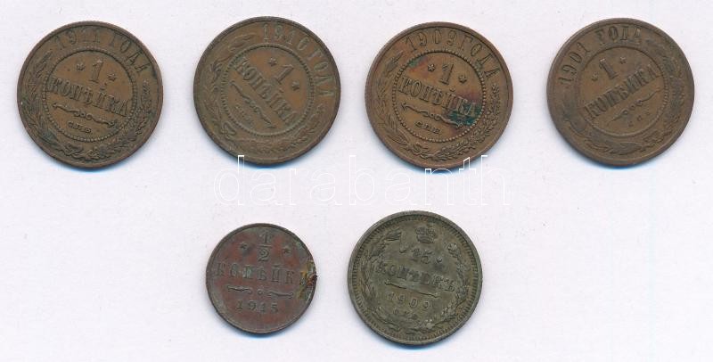 Leírás: Orosz Birodalom 1901-1911. 1/2k-1k Cu (5xklf) + 1909. 15k Ag T:2-,3 patina, folt