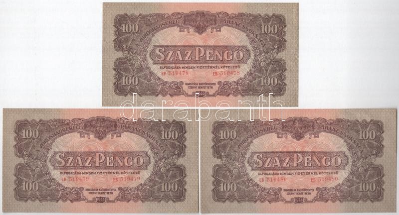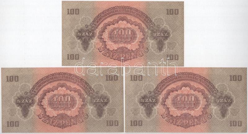 Leírás: 1944. 100P (7x) "A Vöröshadsereg Parancsnoksága", "EB 519474-519480" sorszámkövetők T:I- sarokhajtással