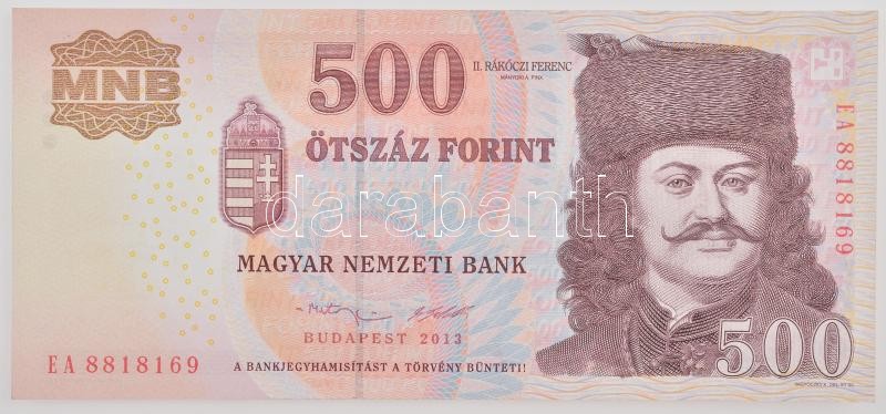 2013. 500Ft "EA 8818169" T:I- https://www.darabanth.com/hu/420-Gyorsarveres/420.0/Numizmatika/Magyar-bankjegyek~2000007/2013-500Ft-EA-8818169-TI-~II2623833