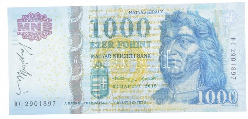 Leírás: 2015. 1000Ft "DC" a tervező, Vagyóczky Károly aláírásával T:I
