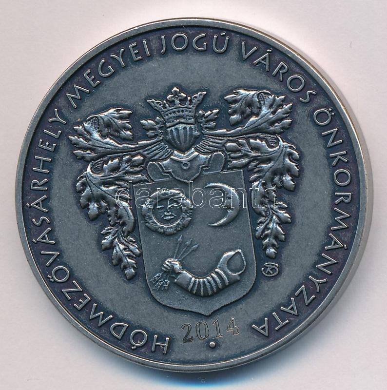 2014. "Hódmezővásárhely Megyei Jogú Város Önkormányzata" kétoldalas, ezüstpatinázott bronz emlékérem, hátlapján Berán Lajos tervezte 1938-as 5 Pengős éremképével (42,5mm) T:1-