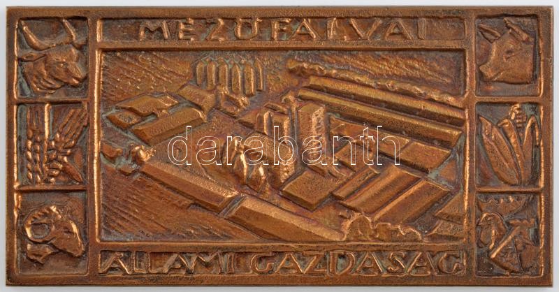 Leírás: ~1970-1980. "Mezőfalvai Állami Gazdaság" egyoldalas, öntött bronz plakett (66x128,5mm) T:1-
