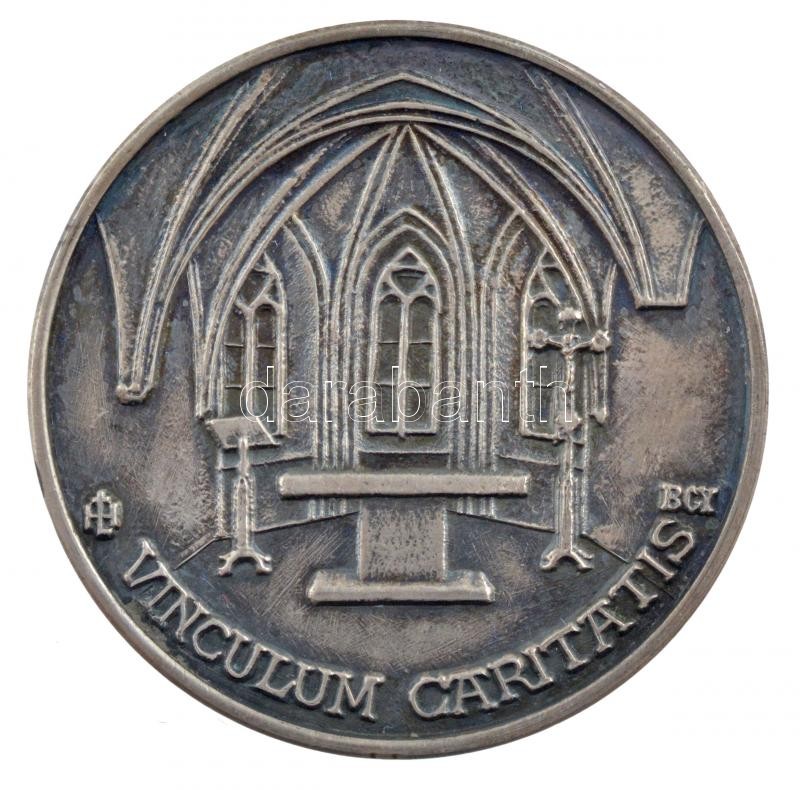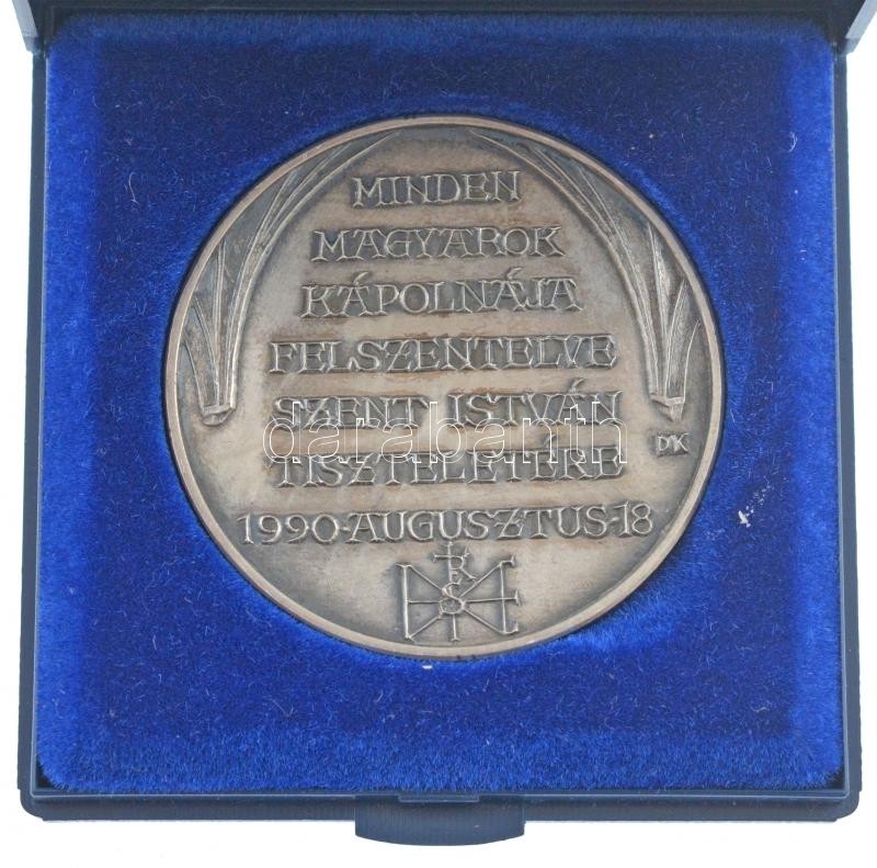 Bognár György (1944-) 1990. "Minden Magyarok Kápolnája Felszentelve Szent István Tiszteletére" kétoldalas ezüstözött Br emlékérem dísztokban (42mm) T:1- ph