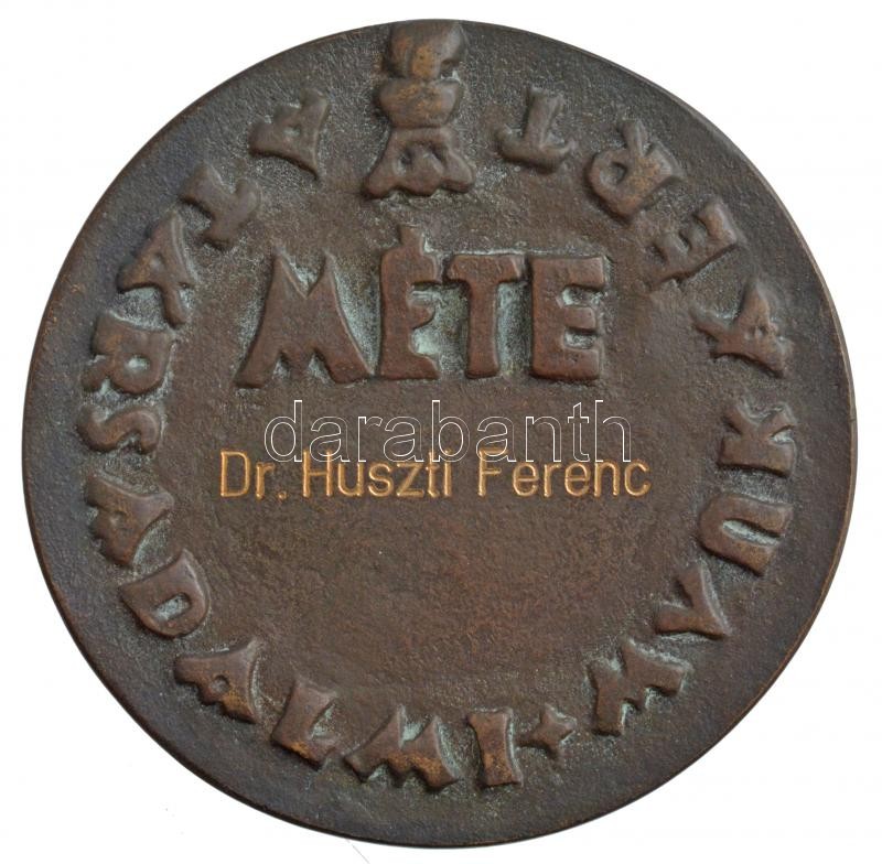Csúcs Ferenc (1905-1999) ~1970. "Dr. Kosutány Tamás / A társadalmi munkáért - MÉTE" kétoldalas Br érdemérem gravírozással, eredeti tokban, peremén "65" sorszámmal (73mm) T:1-