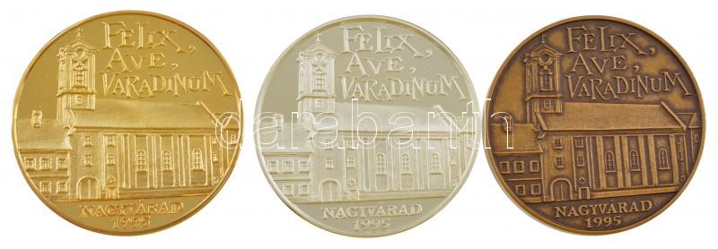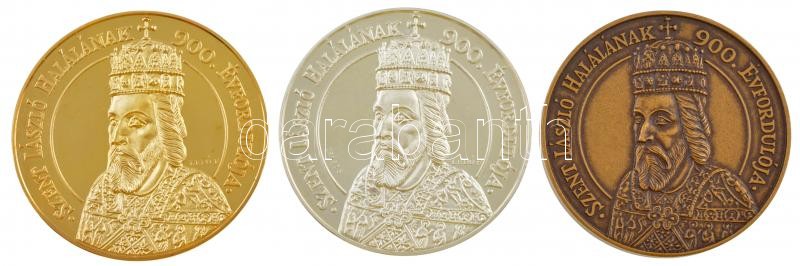 Lebó Ferenc (1960-) 1995. "Nagyvárad - Szent László halálának 900. évfordulója" (3xklf) jelzett Ag emlékérem, aranyozott bronz és bronz kivitelben (31,36g/0.925/42,5mm) T:PP fo., PP, 1