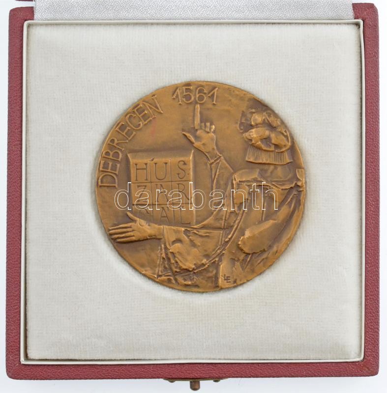 Leírás: Ligeti Erika (1934-2004) DN "Debrecen 1561 - Huszár Gál / ANY (Alföldi Nyomda) - Hűséges Munkáért" kétoldalas, bronz emlékérem, eredeti tokban (60,5mm) T:1-