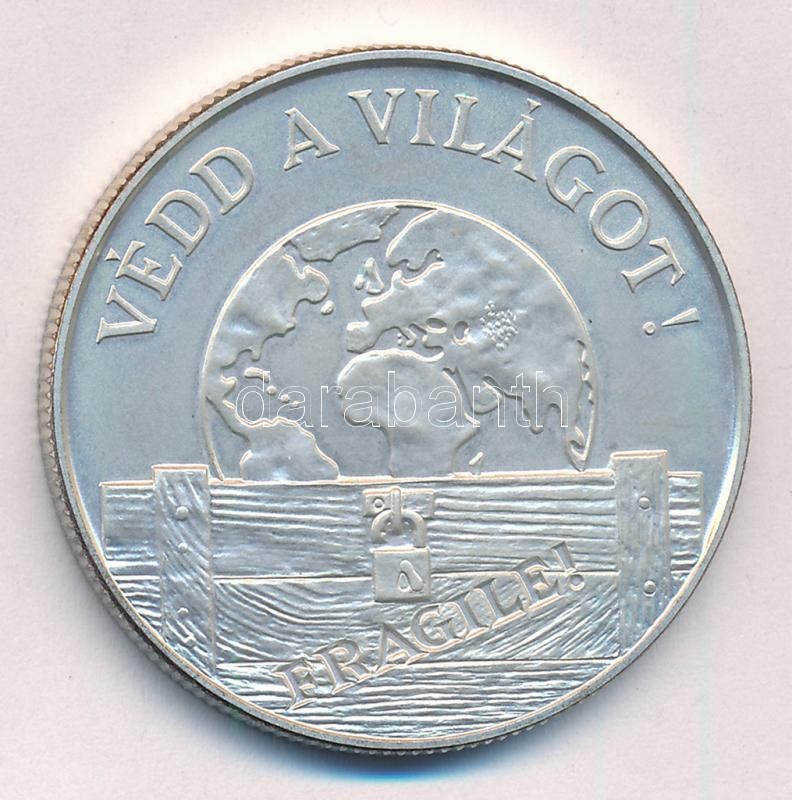 Leírás: 1994. 1000Ft Ag "Védd a világot!" T:BU patina