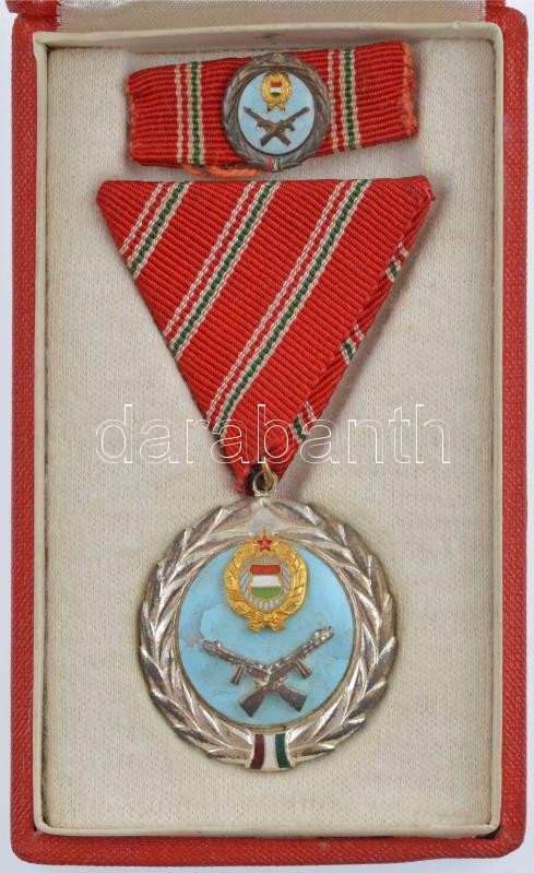 Leírás: 1957. "Szolgálati Érdemérem" zománcozott kitüntetés mellszalagon, miniatűrrel szalagsávon, eredeti tokban T:2 NMK 618.