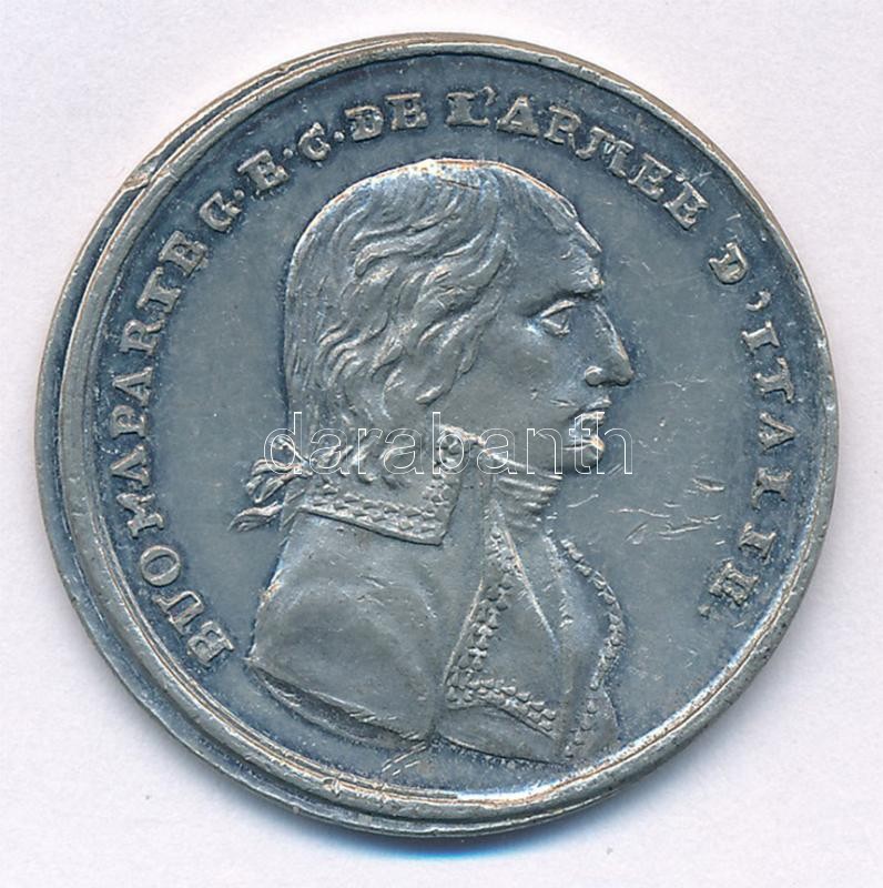 Franciaország 1797. "Napóleon itáliai hadjárata" kétoldalas fém emlékérem (33mm) T:1-,2 félrecsúszott veret