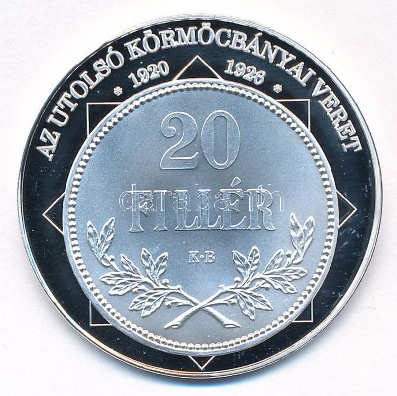Leírás: DN "A magyar nemzet pénzérméi - Az utolsó körmöcbányai veret 1920-1926" Ag emlékérem, tanúsítvánnyal (10,37g/0.999/35mm) T:PP
