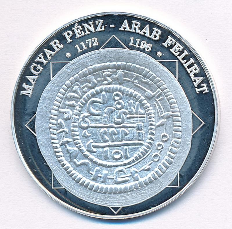 Leírás: DN "A magyar nemzet pénzérméi - Magyar pénz - arab felirat 1172-1196" Ag emlékérem, tanúsítvánnyal (10,37g/0.999/35mm) T:PP