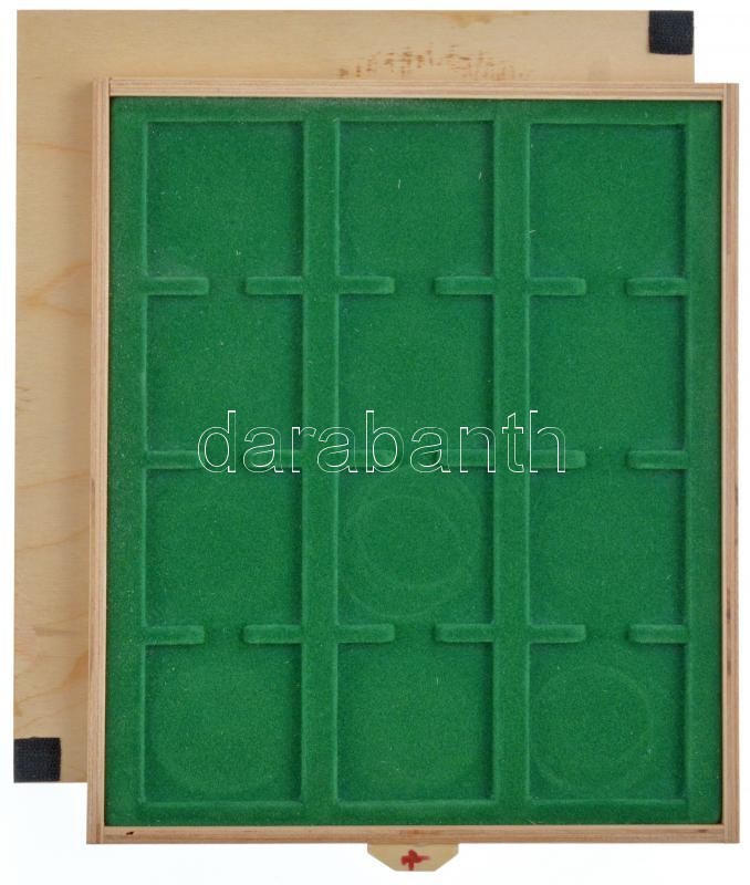 Leírás: 4db fa éremtartó kazetta, 1db kihúzható tálcával, 12 férőhellyel, használt, jó állapotban