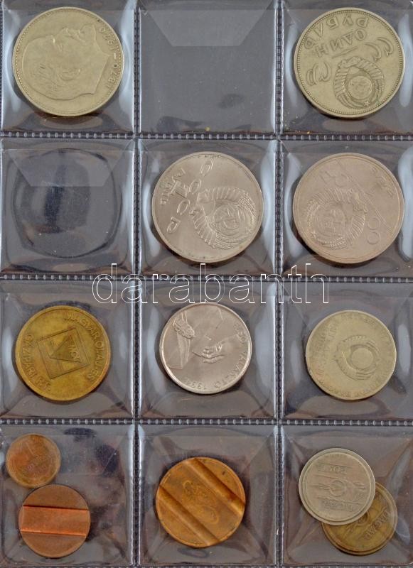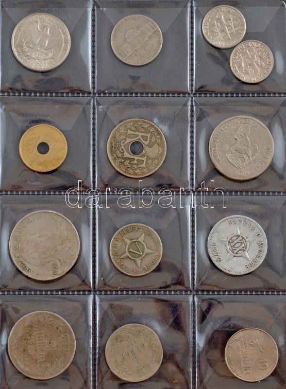 Műbőr érmetartó album 66db vegyes magyar és külföldi fémpénzzel, közte Szovjetunió, Kuba, India T:vegyes