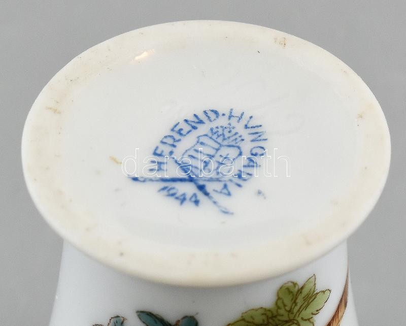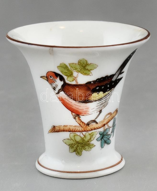 Leírás: Herendi Rothschild mintás porcelán mini váza, kézzel festett, jelzett, hajszálrepedéssel, m: 5 cm