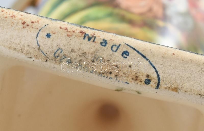 Leírás: Régi fedeles urnaváza pár, matricás, jelzett, sérült, m: 22 cm