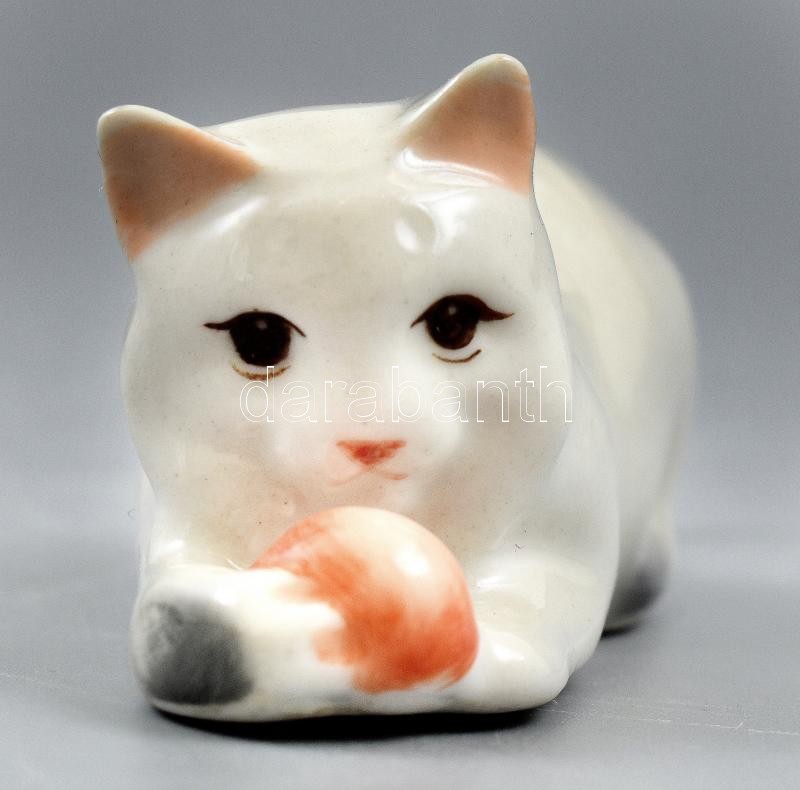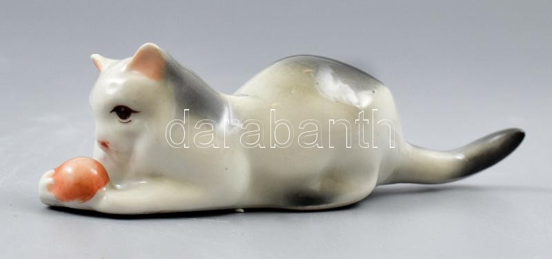 Leírás: Zsolnay labdázó cica, kézzel festett, jelzett, apró kopásokkal, 12×3,5×3,5 cm